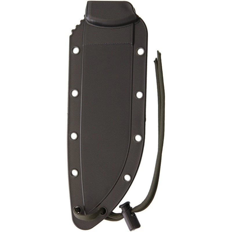 Ce couteau Tactical Model 6 de Esee offre une lame lisse en acier carbone 1095 et une longueur totale de 27.9cm avec un manche Micarta en lin.