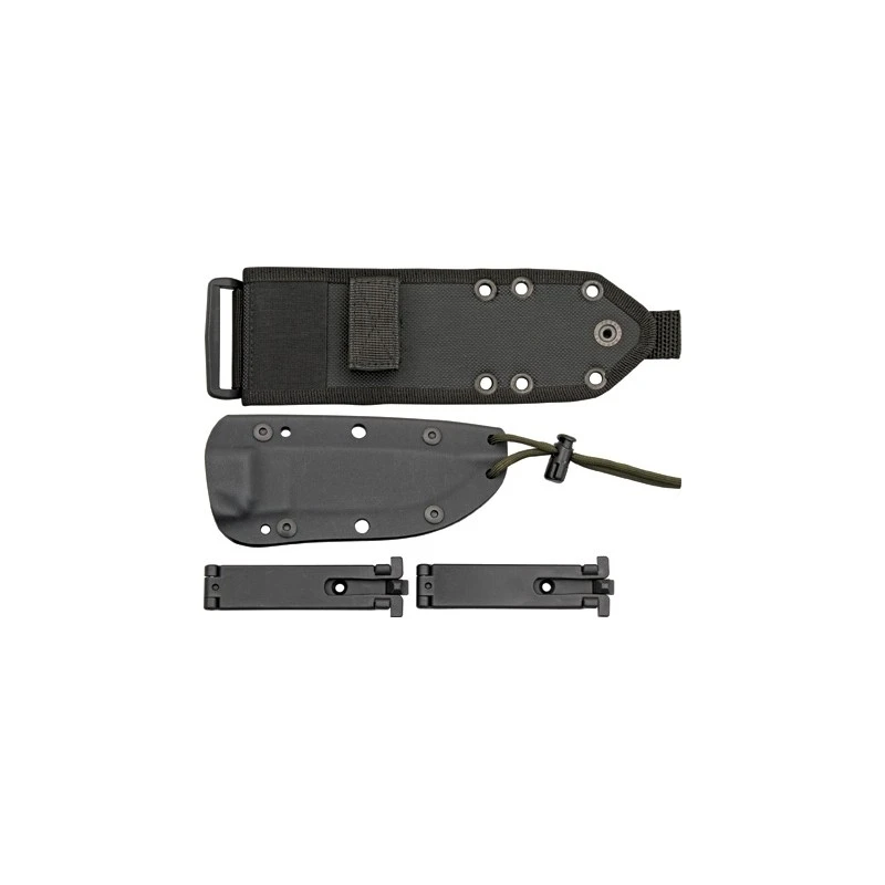 Ce couteau Model 4 de Esee offre une lame lisse en acier carbone de couleur vert feuillage et une longueur totale de 22.8cm avec un manche orange G10.